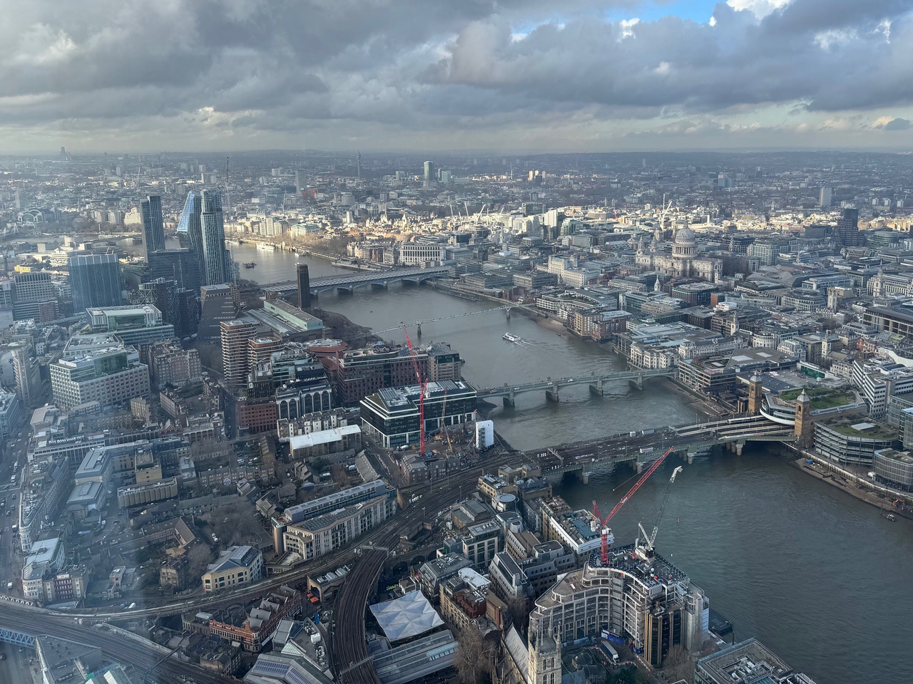 Looking west along the Thames to St. Paul's and the City of London (and beyond) from the Shard.